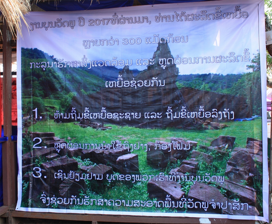 The Vat Phou World Heritage Site Office (WHSO), in collaboration with Champasak District authorities, financed by the French Development Agency (AFD) and with the technical support of GRET, organise a pilot Awareness raising campaign on Environment during the Vat Phou Festival 2018.